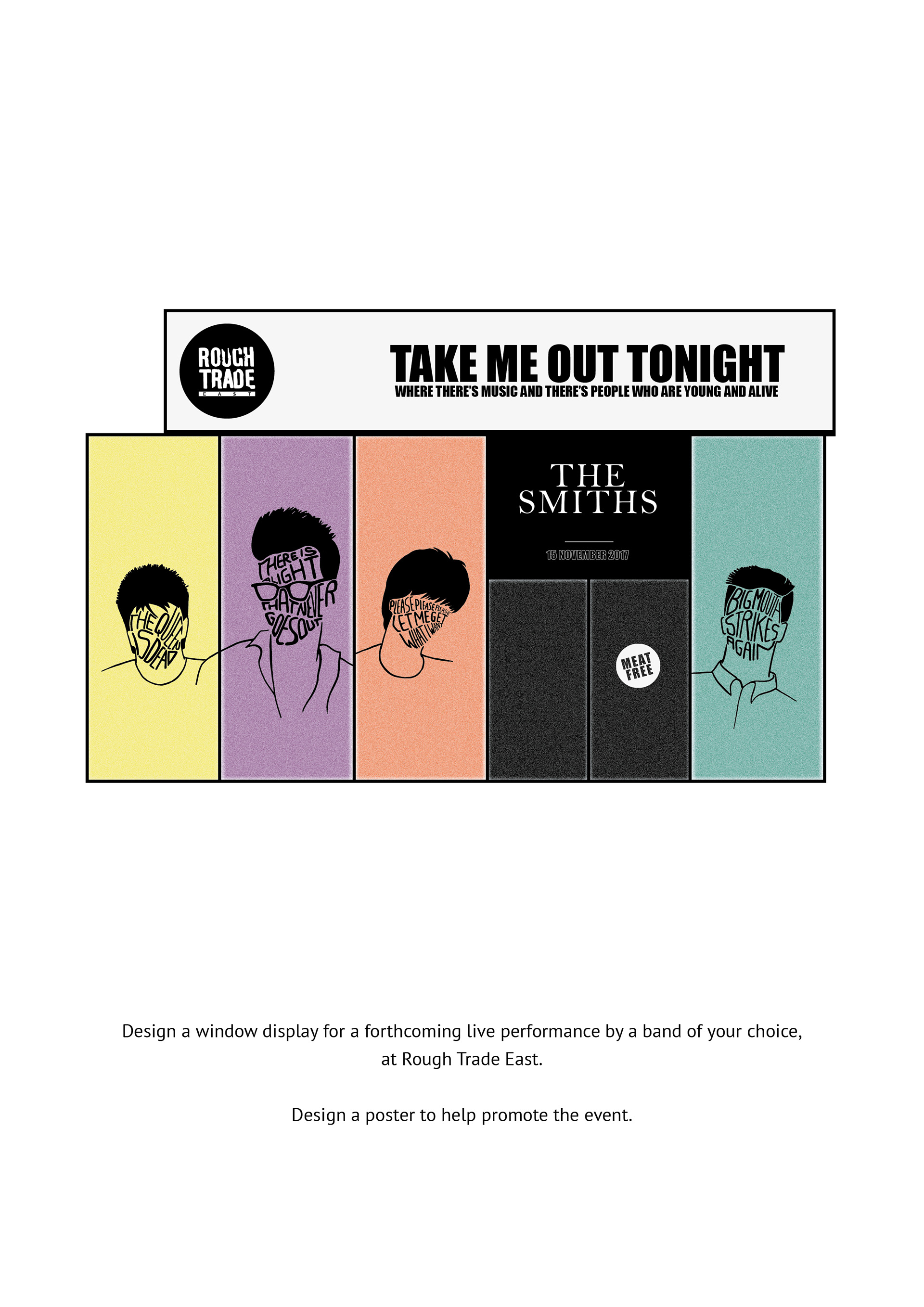 Window and poster design for a live performance of The Smiths, at Rough Trade East.